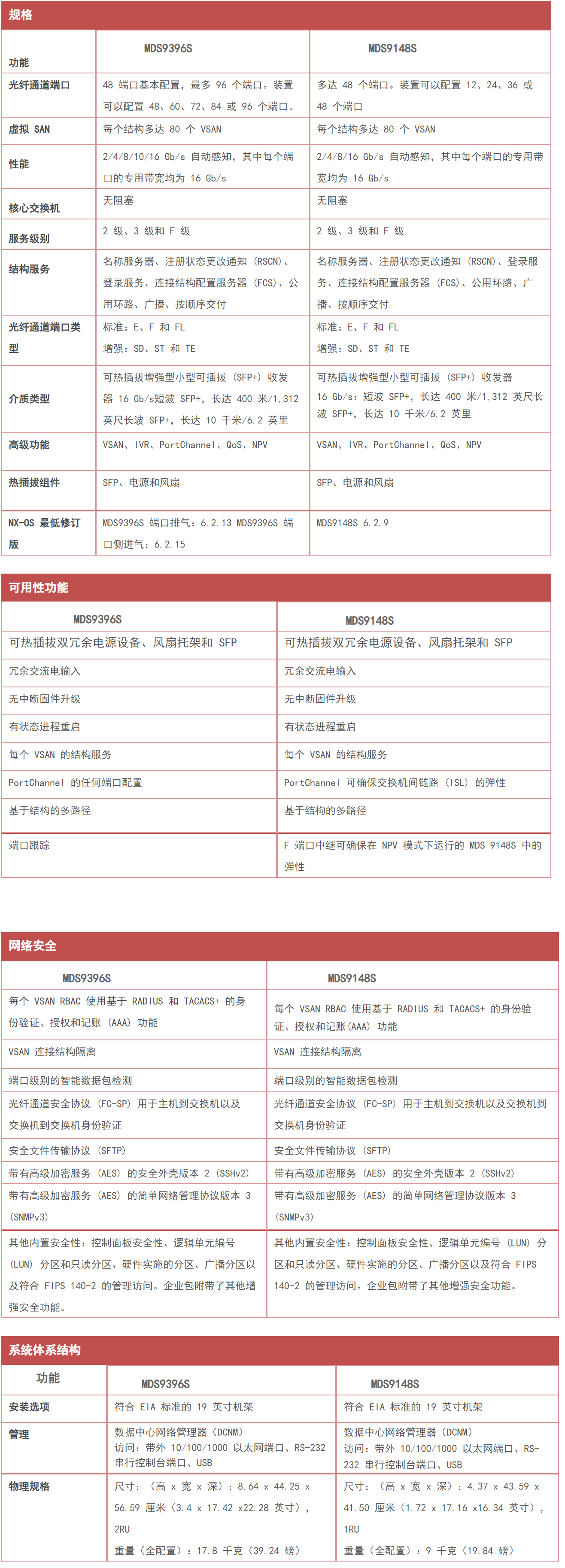 MDS9396S此96端口交换机是一款高度可靠、灵活的结构交换机。该产品将高性能与卓越的灵活性和成本效益完美结合。这款功能强大的紧凑型双机架单元 (2RU) 交换机可从 48 个线速 16 Gb/s 光纤通道端口扩展至 96 个同类端口。为了实现更大的灵活性,有两个 MDS9396S 型号支持气流选项。您可以选择端口侧进气 (PSI)(气流方向为从前到后)或端口侧排气 (PSE)(气流方向为从后到前)。型号 MDS9396S-48S-I 包括一个 48 端口基本配置,采用端口侧进气,而型号 MDS9396S-48 包括一个 48 端口基本配置,采用端口侧排气。通过提供以下两个 MDS9396S 气流选项,提升了冷热通道网络设计的灵活性。